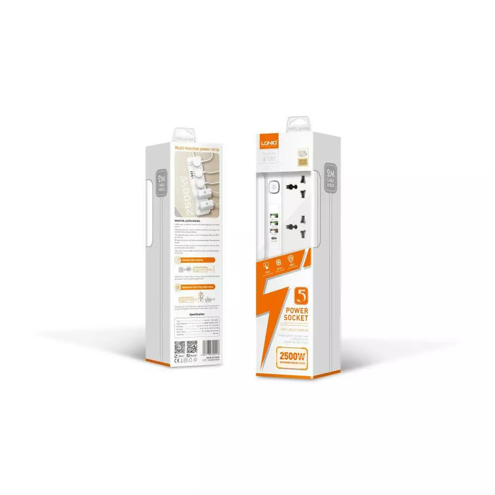 Мережевий подовжувач LDNIO SC5415, 5xSocket/1xType-C/3xUSB-A, PD 20W, QC 3.0, 2m, White