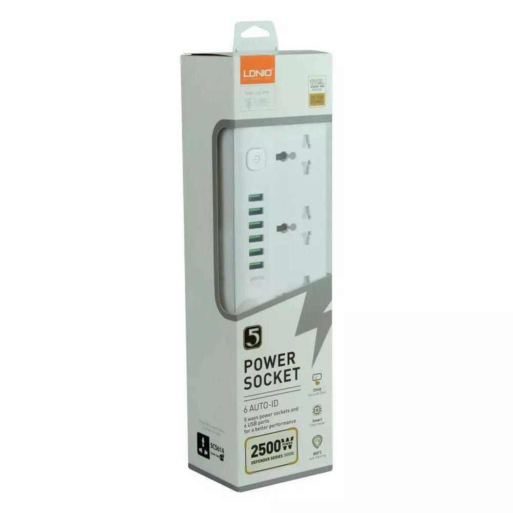 Мережевий подовжувач LDNIO SC5614, 5xSocket/6xUSB-A, 2m, White