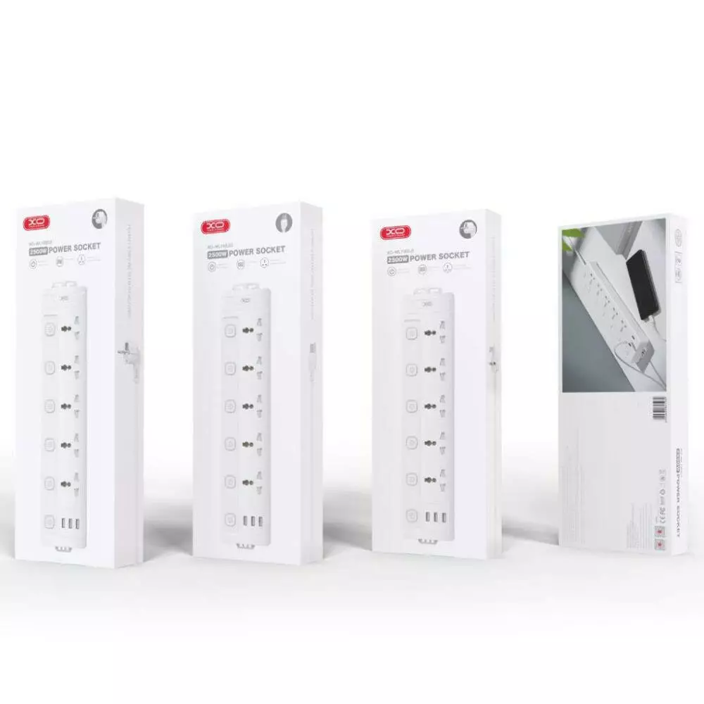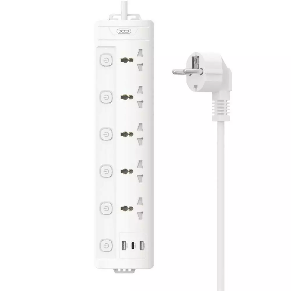 Мережевий подовжувач XO WL19, 5xSocket/1x-Type-C/2xUSB-A, 2m, White