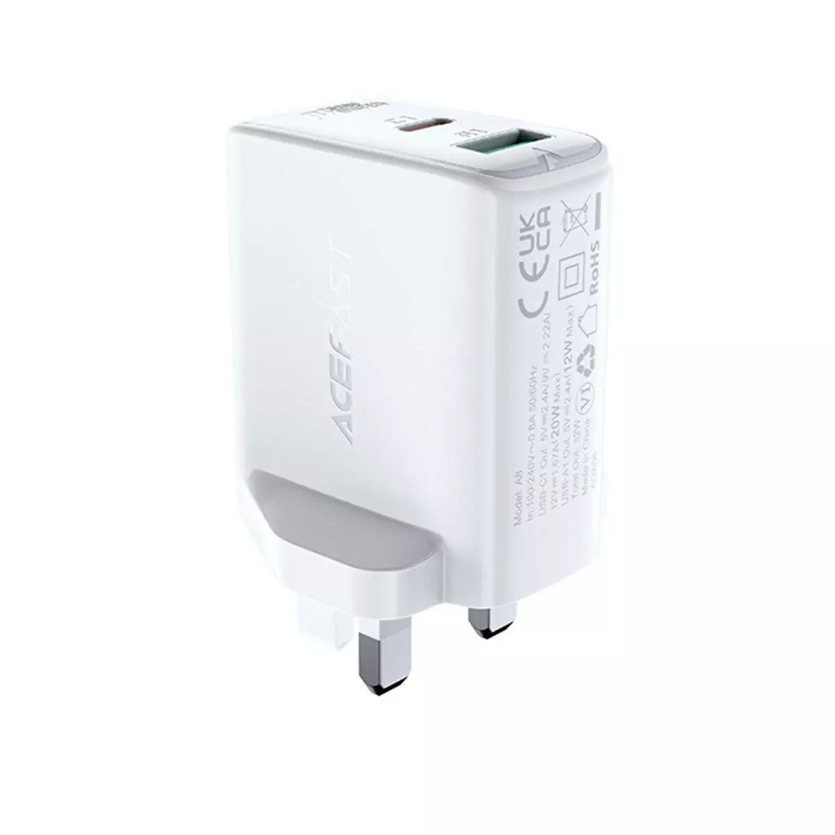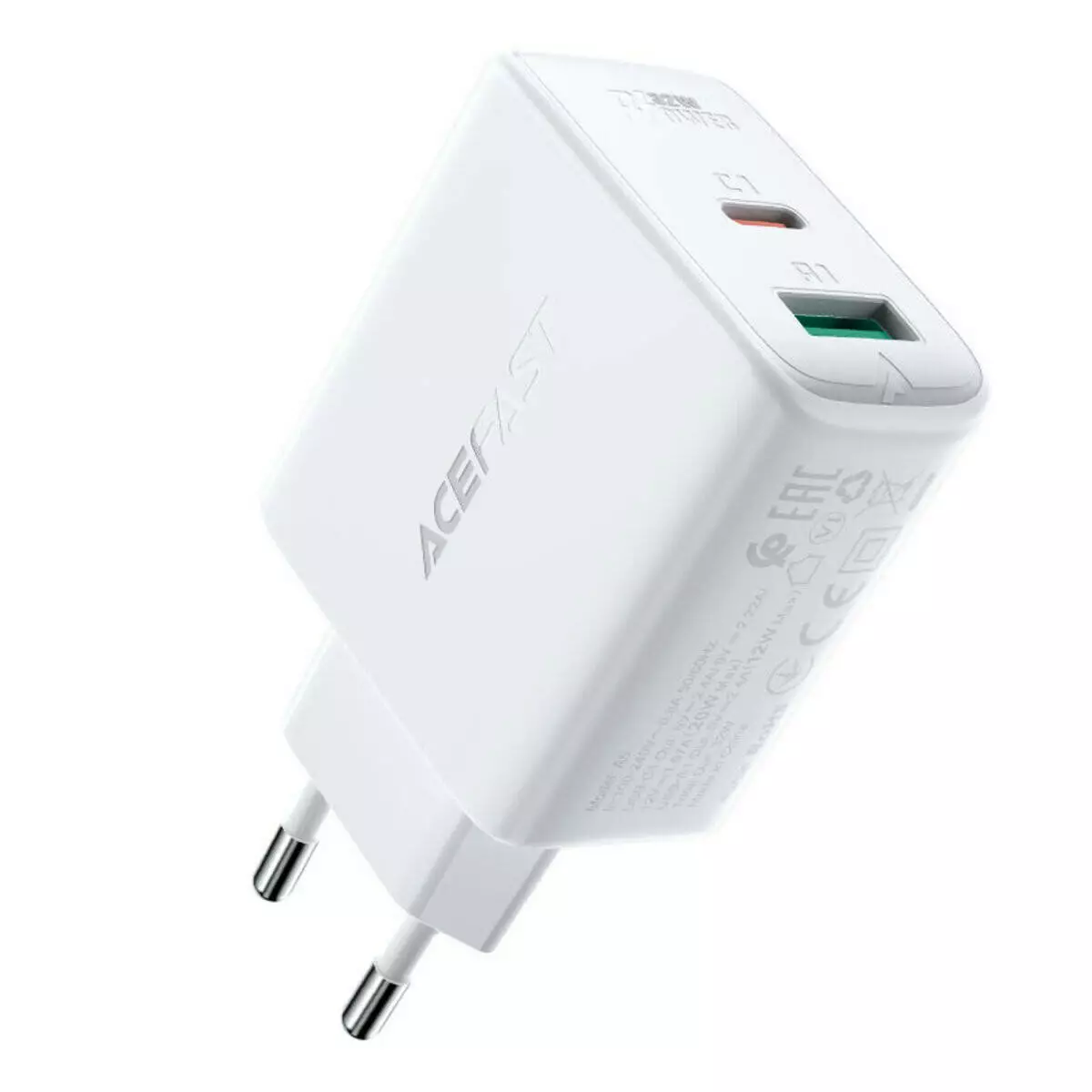 Мережевий зарядний пристрій Acefast A5 PD 32W, Dual Port Type-C, USB-A White