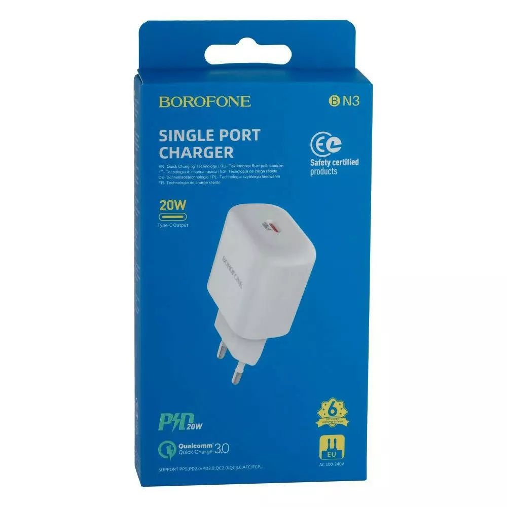 Мережевий зарядний пристрій Borofone BN3, PD 20W, QC 3.0, White
