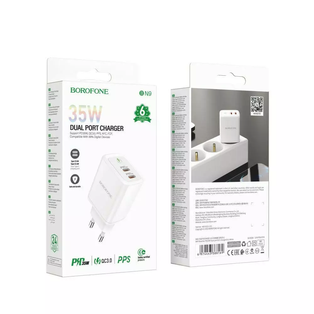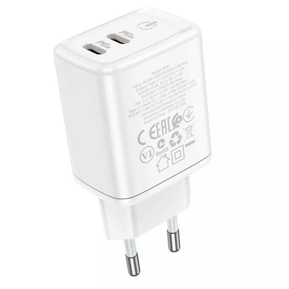 Мережевий зарядний пристрій Borofone BN9, PD 35W, QC 3.0, White