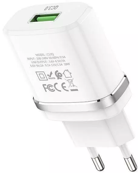 Мережевий зарядний пристрій Hoco C12Q, QC 3.0, PD 18W, Cable