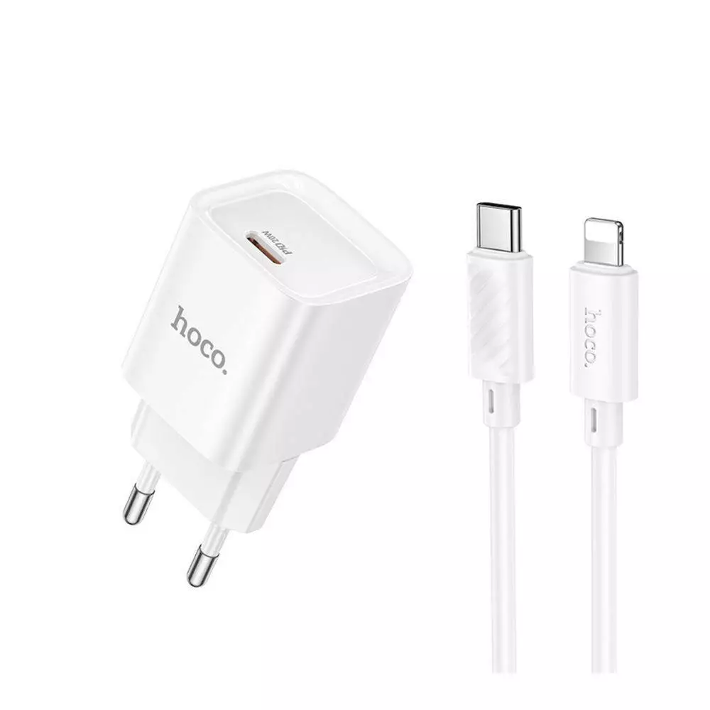 Мережевий зарядний пристрій Hoco C146A, Cable Type-C to Lightning, PD 20W, QC 3.0, White