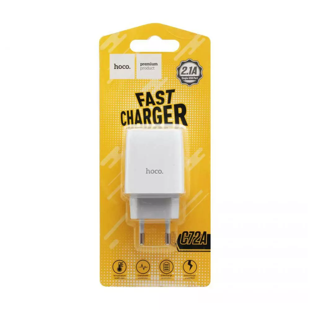 Мережевий зарядний пристрій Hoco C72A, 5V, 2.1A White