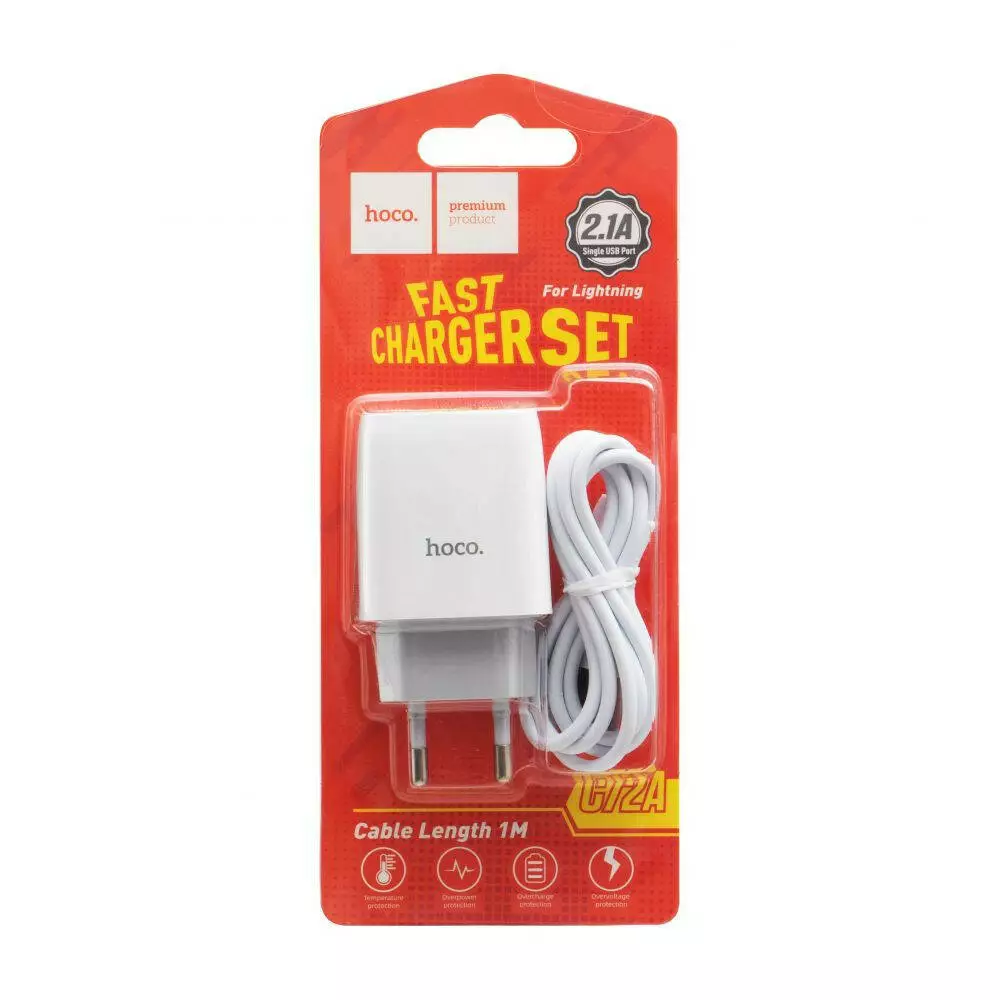 Мережевий зарядний пристрій Hoco C72A, Cable Lightning, 5V, 2.1A