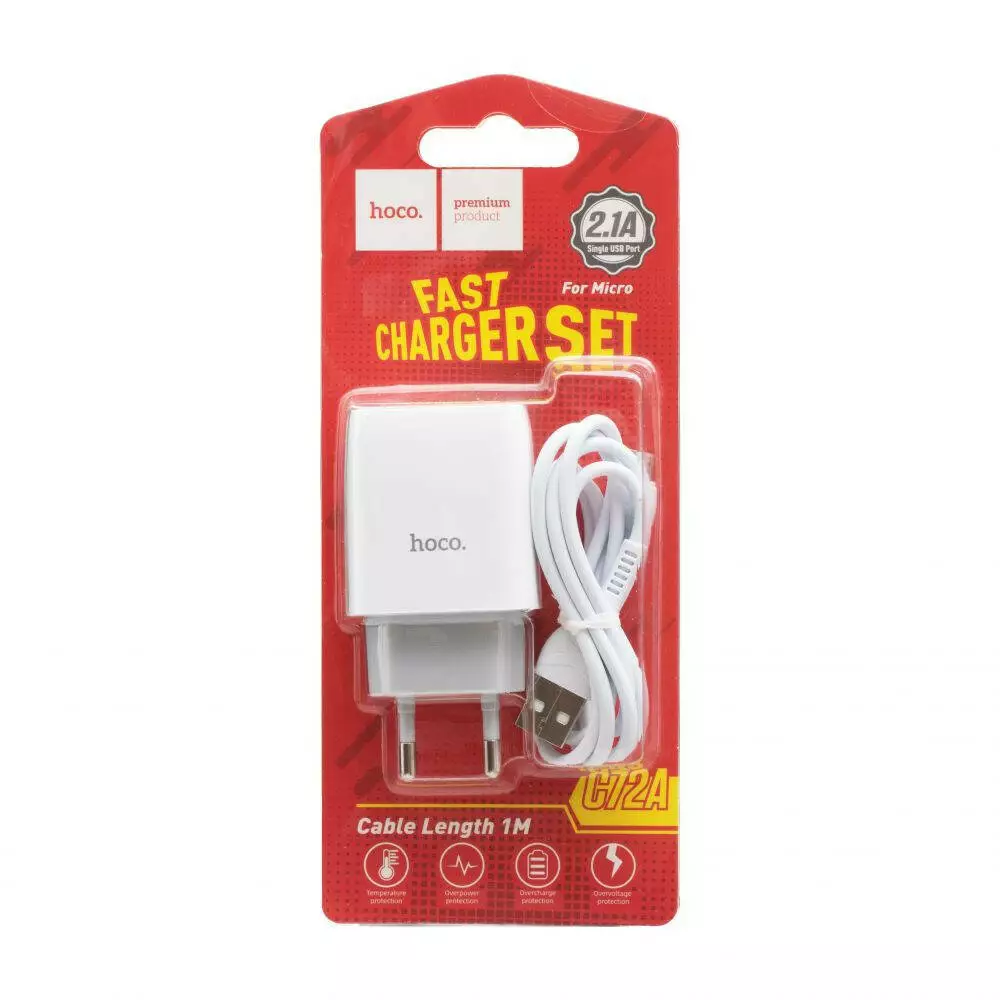 Мережевий зарядний пристрій Hoco C72A, Cable Micro, 5V, 2.1A White