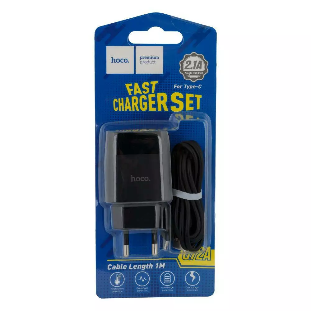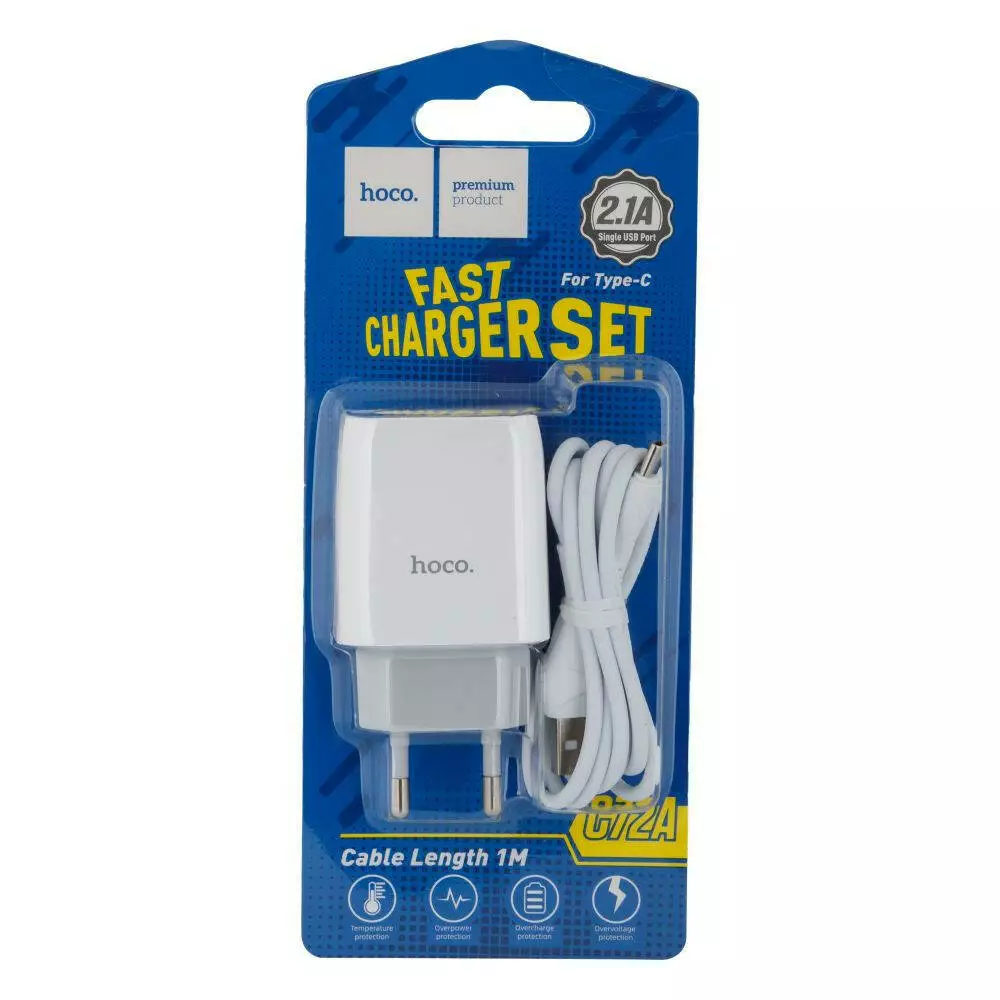 Мережевий зарядний пристрій Hoco C72A, Cable Type-C, 5V, 2.1A White