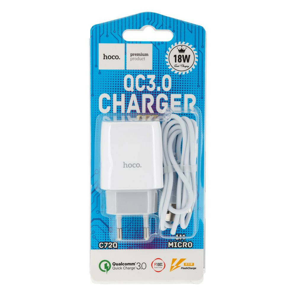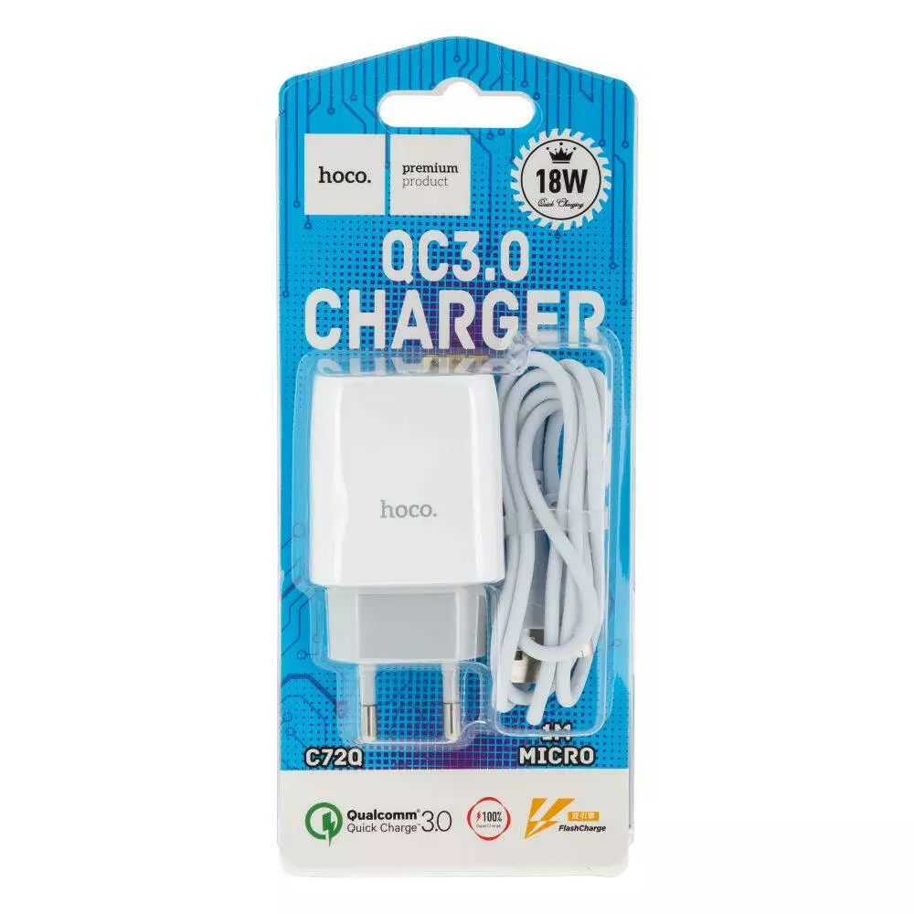 Мережевий зарядний пристрій Hoco C72Q, Cable Micro, QC 3.0, White