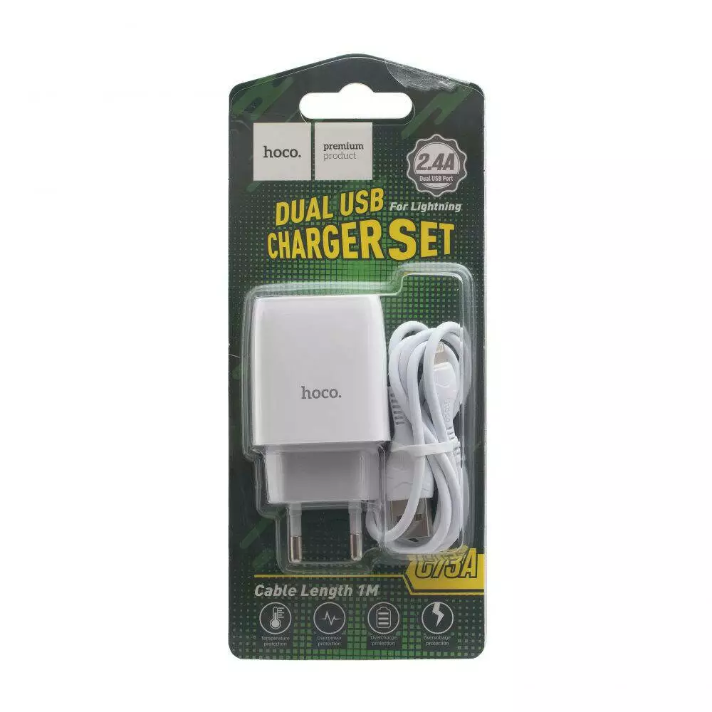 Мережевий зарядний пристрій Hoco C73A, Cable Lightning, 2.4A, White