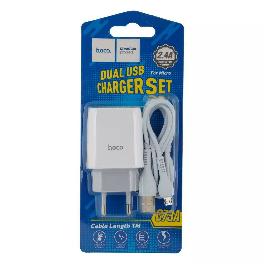 Мережевий зарядний пристрій Hoco C73A, Cable Micro, 2.4A, White