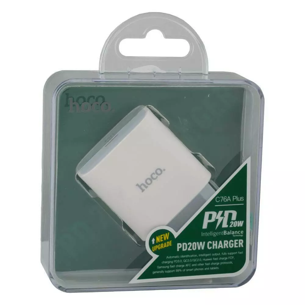 Мережевий зарядний пристрій Hoco C76A Plus, PD 20W, White