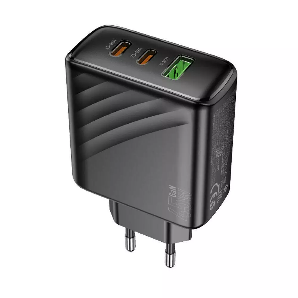 Мережевий зарядний пристрій Hoco CS26A, 2xType-C, 1xUSB-A, PD 45W, QC 3.0, Black