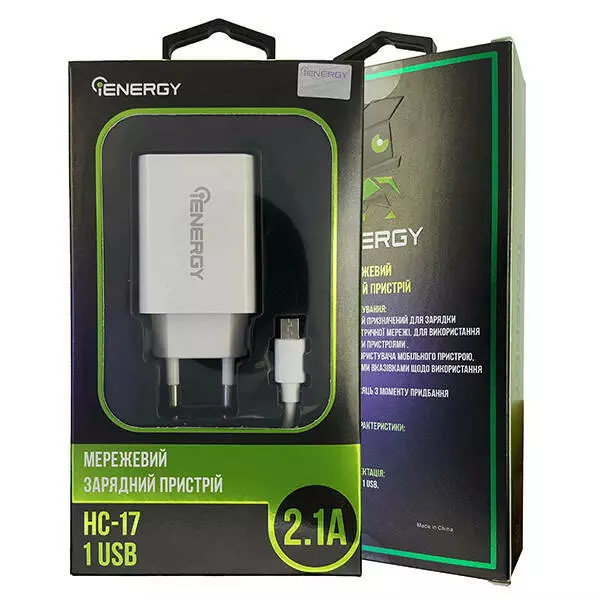 Мережевий Зарядний Пристрій iEnergy HC-17, Cable MicroUSB, 2A,