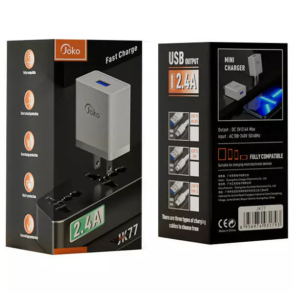 Мережевий зарядний пристрій Joko JK77, Cable Lightning, 2.4A, White