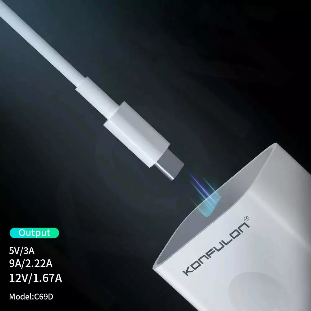 Мережевий зарядний пристрій Konfulon C69D, Cable Type-C to