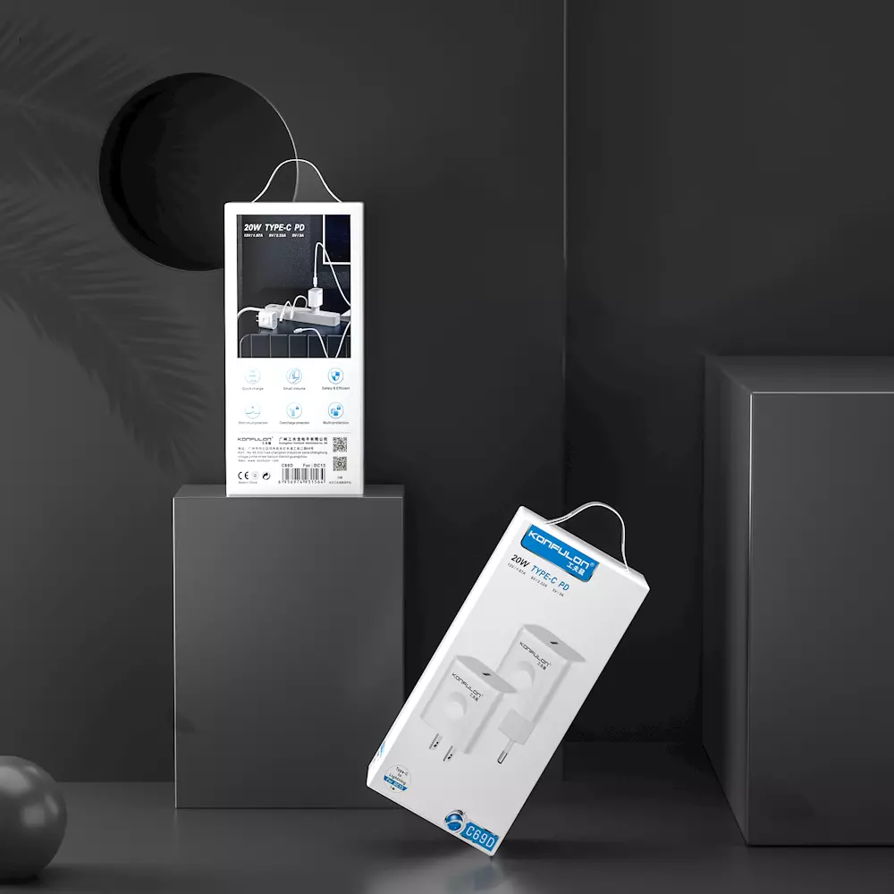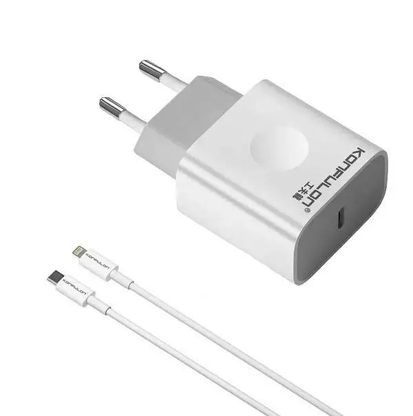 Мережевий зарядний пристрій Konfulon C69D, Cable Type-C to Lightning, PD 20W, White