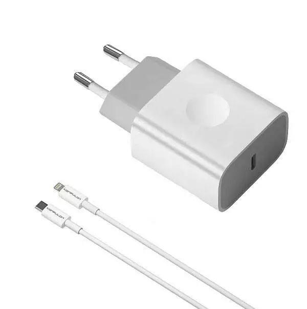 Мережевий зарядний пристрій Konfulon C87C, Cable Type-C to Lightning, PD 30W, QC 3.0, White