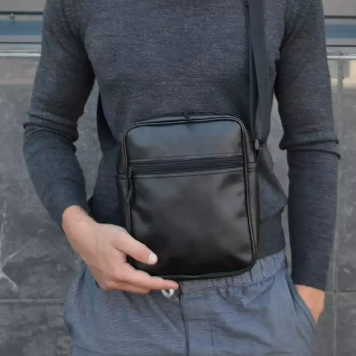 Месседжер большой XL из эко кожи. Цвет: черный