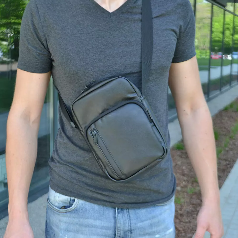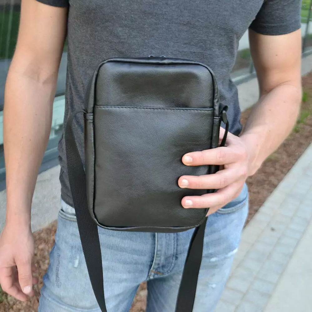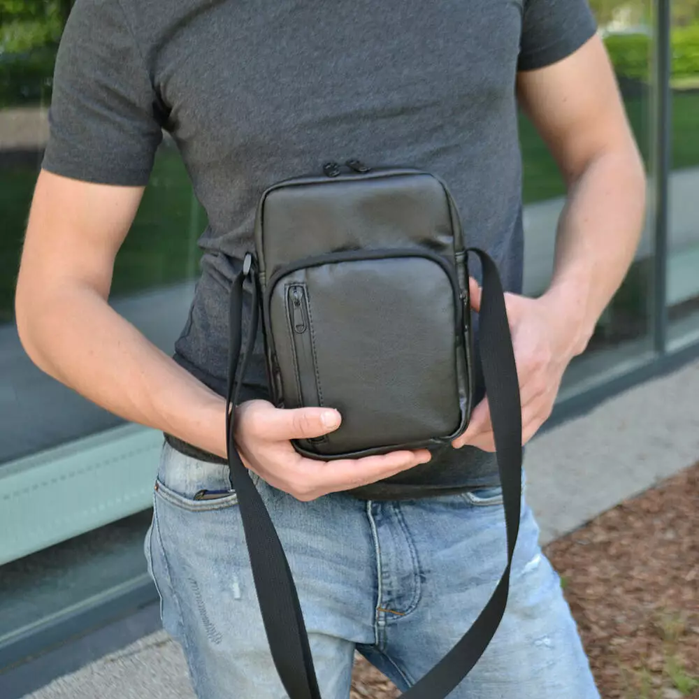 Мессенджер из эко-кожи. Сумка мессенджер. Сумка на 5 карманов. Цвет: черный