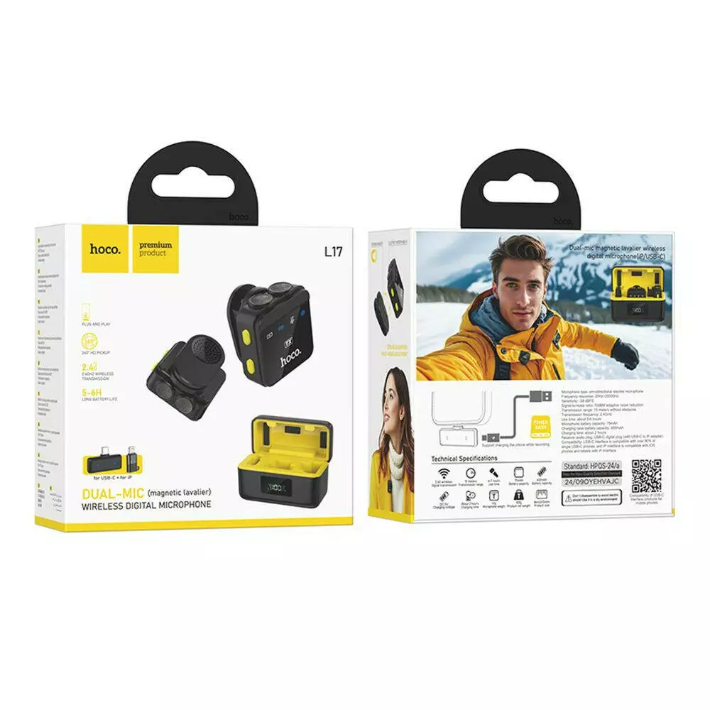 Мікрофон безпровідний Hoco L17, Type-C/Lightning, Dual-mic, Black