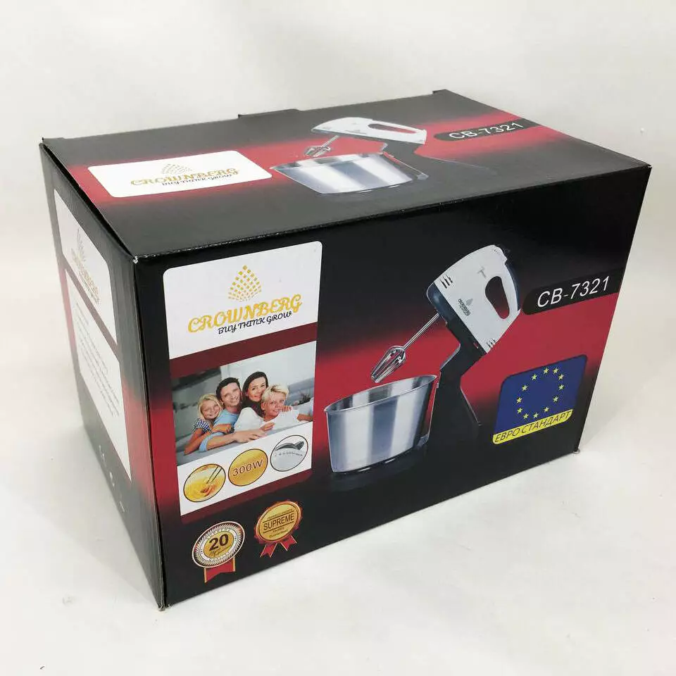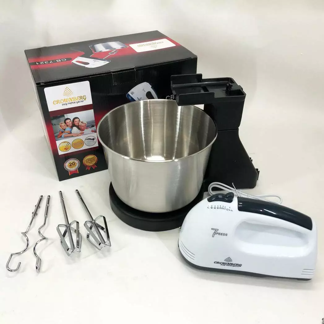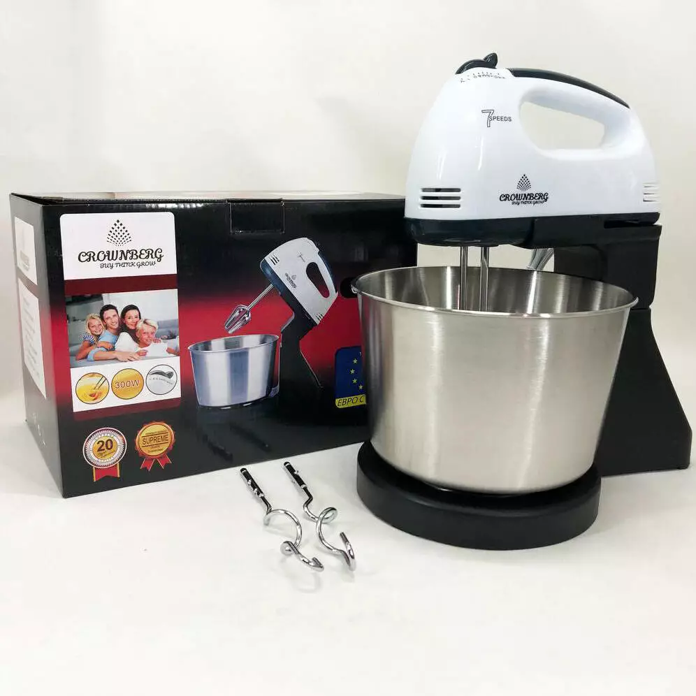 Миксер CROWNBERG CB-7321 с чашей/металл, миксеры с чашей, миксер тестомес для дома, кухонный стационарный