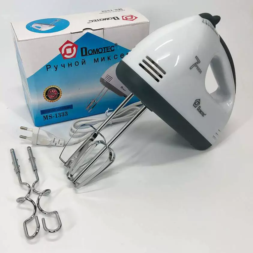 Миксер Domotec MS-1333 ручной с насадками для взбивания и для теста, Двухвенчиковый миксер