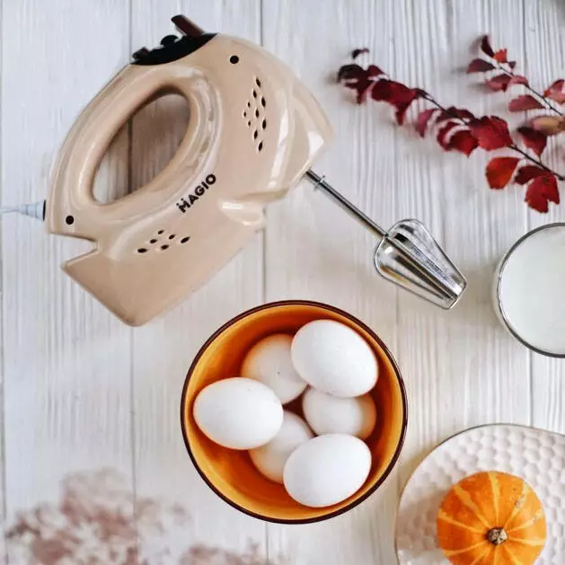 Мощность составляет 300 Вт, что обеспечивает быструю и качественную работу. Миксер имеет 5 скоростных режимов для взбивания. Функция "Турбо" позволяет ненадолго значительно увеличить скорость вращения, она особенно важна при быстром разбивании комков в тесте.
