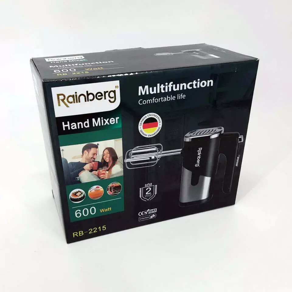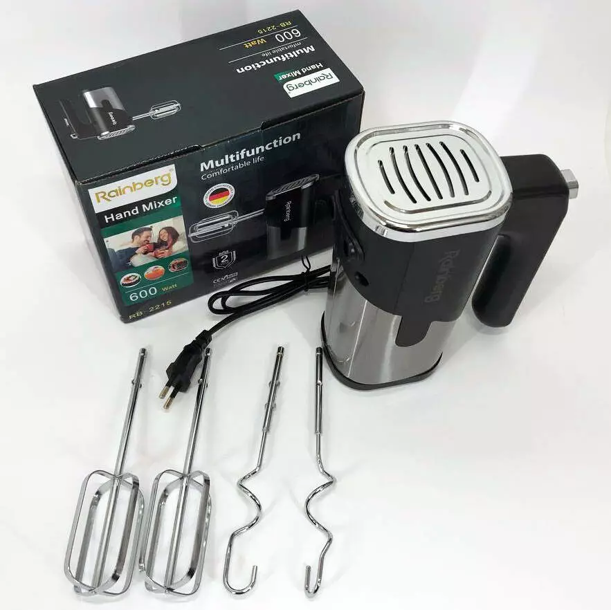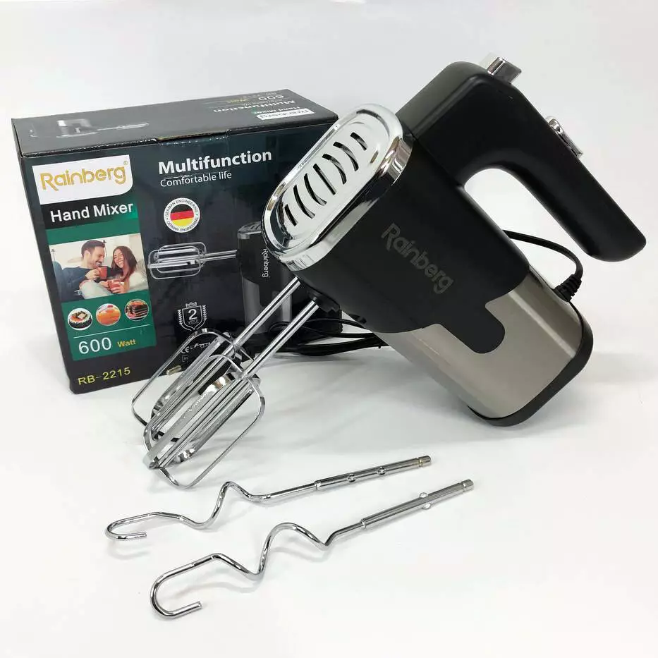 Миксер Rainberg RB-2215 ручной на 5 режимов 600 Вт + 2 вида насадок, лучший ручной миксер для кухни