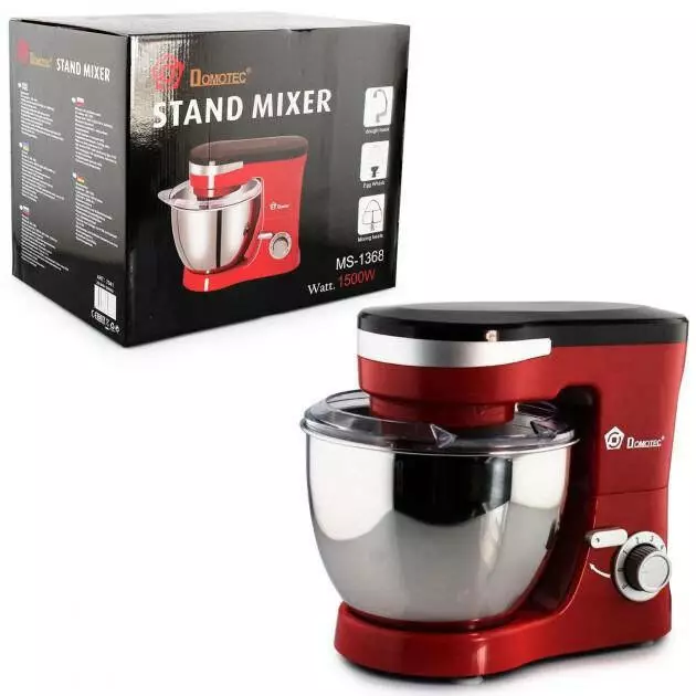 Планетарный миксер тестомес Domotec MS-1368 - высококачественная кухонная машина для замеса теста. Предназначен для бытового и полупрофессионального использования. Корпус изготовлен из прочного ABS пластика. Чаша для замеса выполнена из нержавеющей стали, съемная, надежно фиксируется.