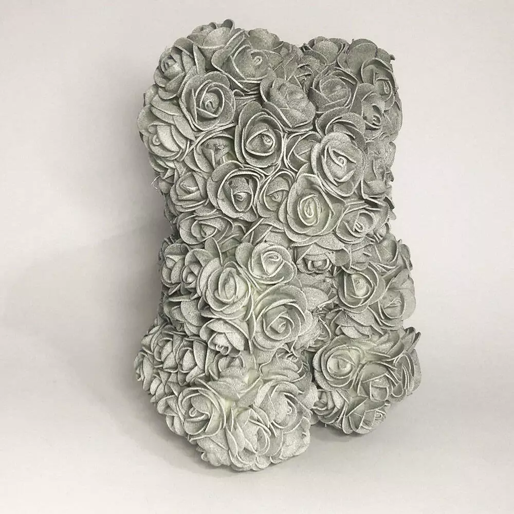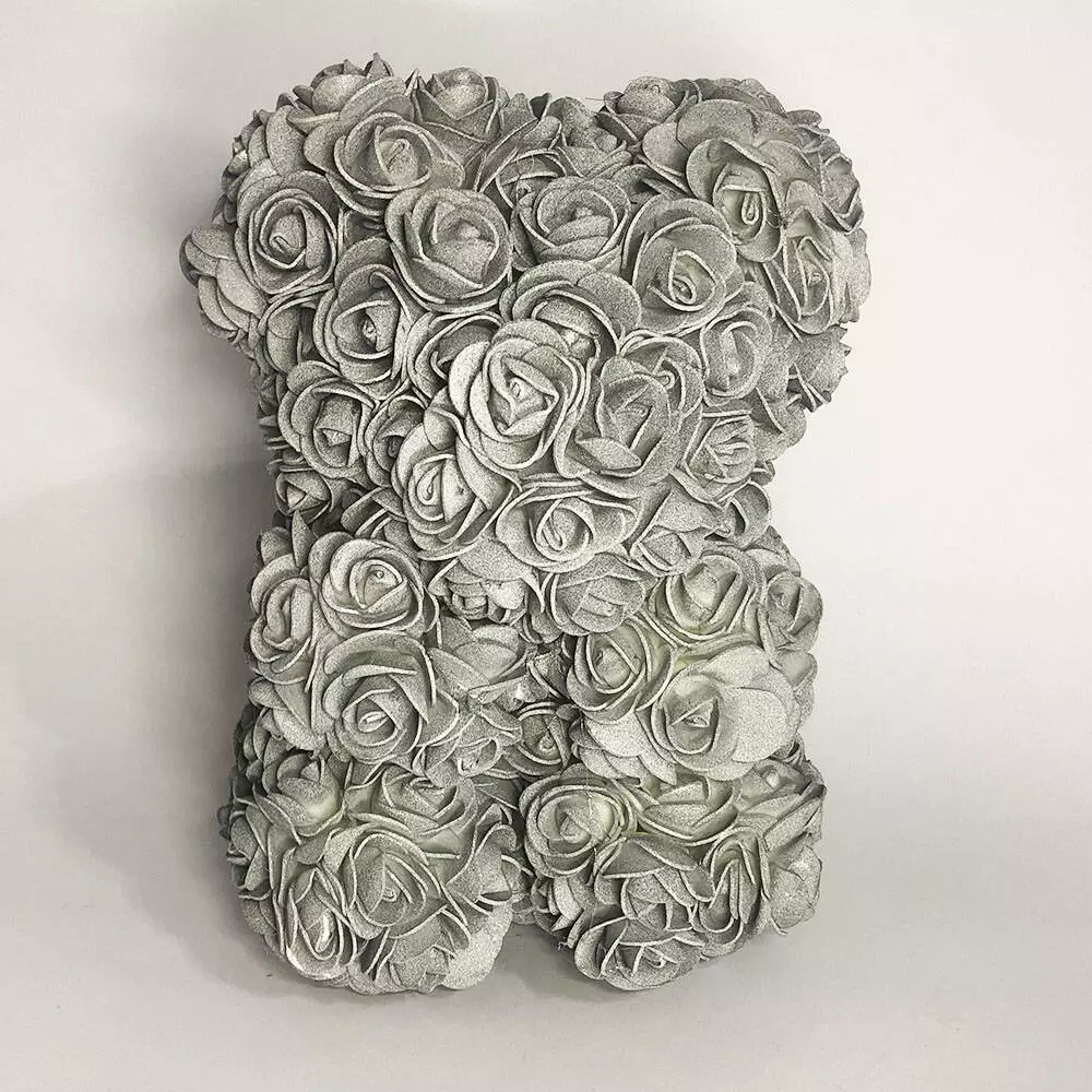 Мишка из искусственных 3D роз 25 см. Цвет: серебряный