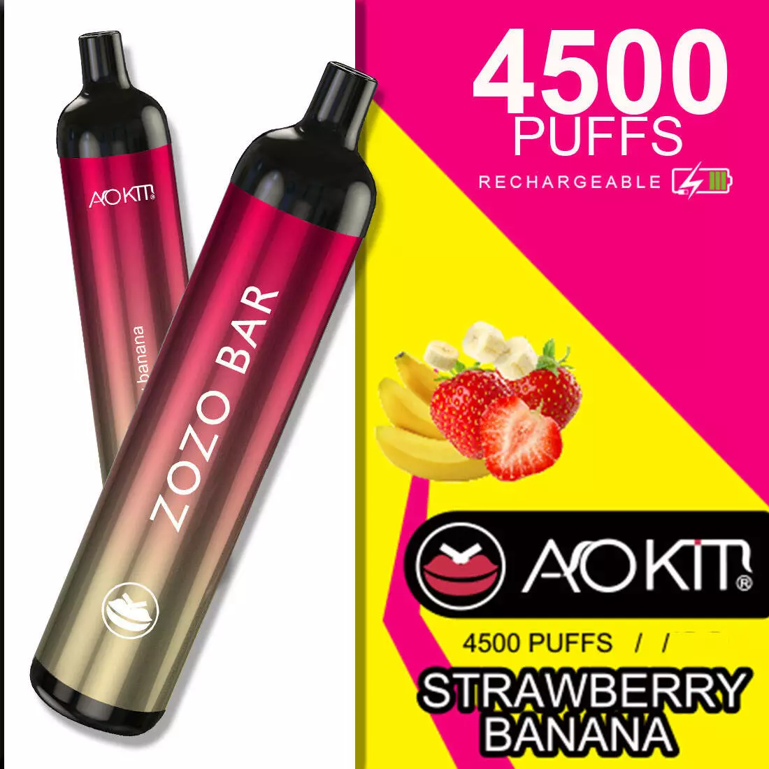 Многоразовый под AOKIT ZOZO bar 4500 тяг с подзарядкой. Клубника Банан