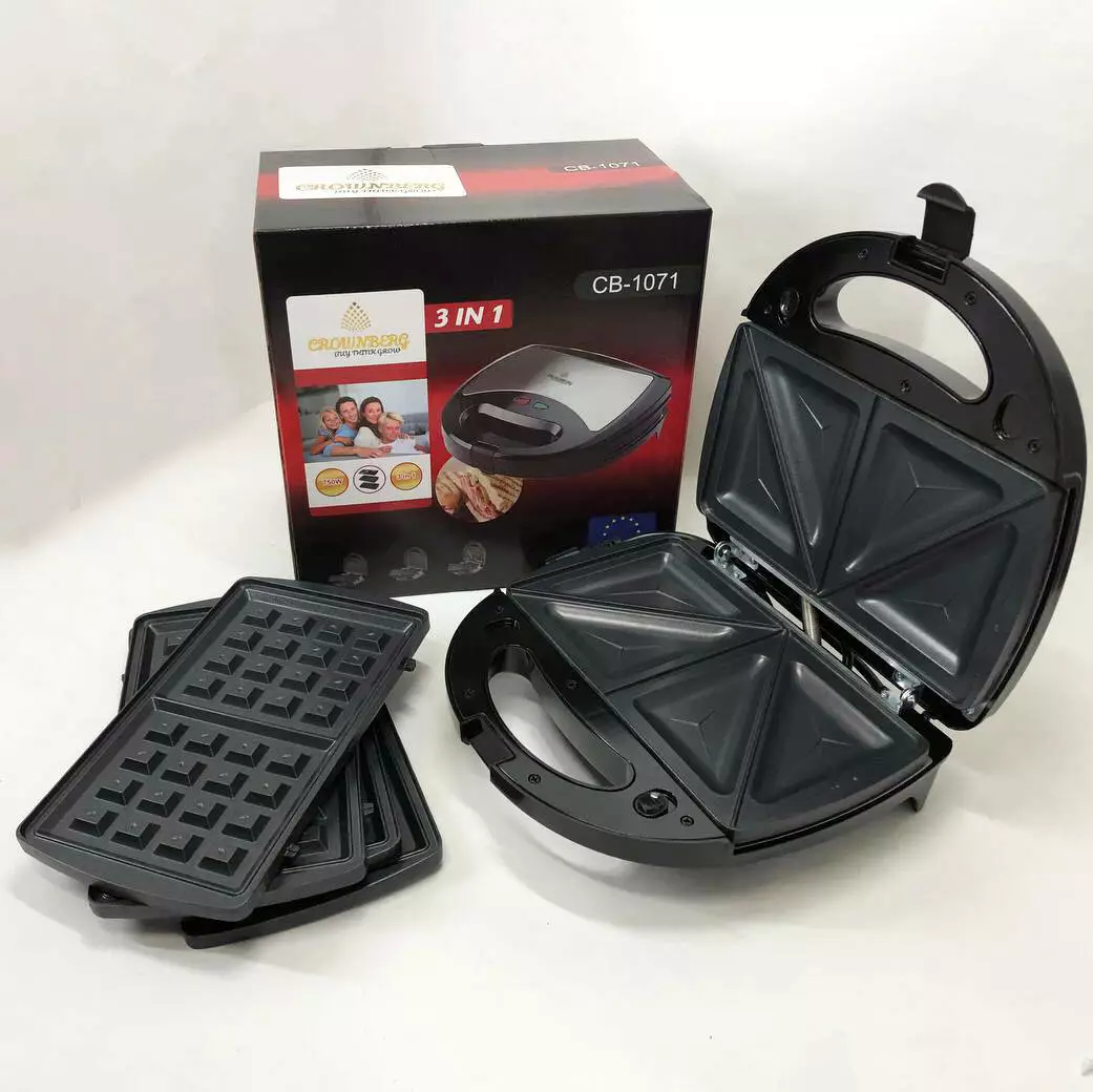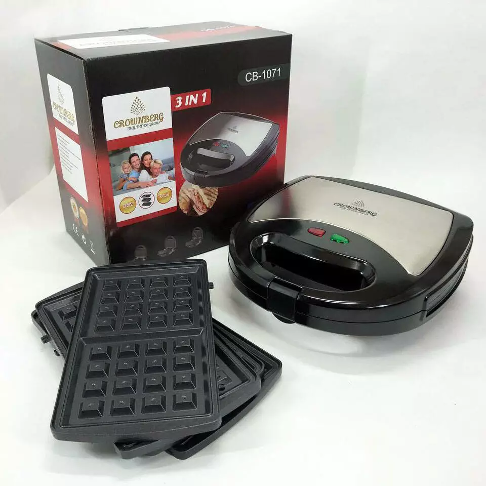 Мультимейкер 3 В 1 Crownberg Cb-1071 Гриль Сендвичница Вафельница 750Вт