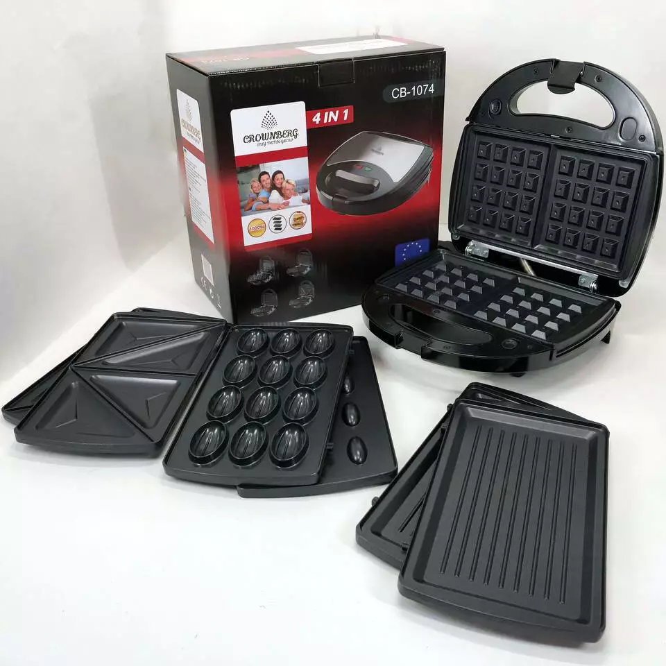 Мультимейкер 4 В 1 Crownberg Cb-1074 750 Вт Гриль Сендвичница Вафельница Орешница
