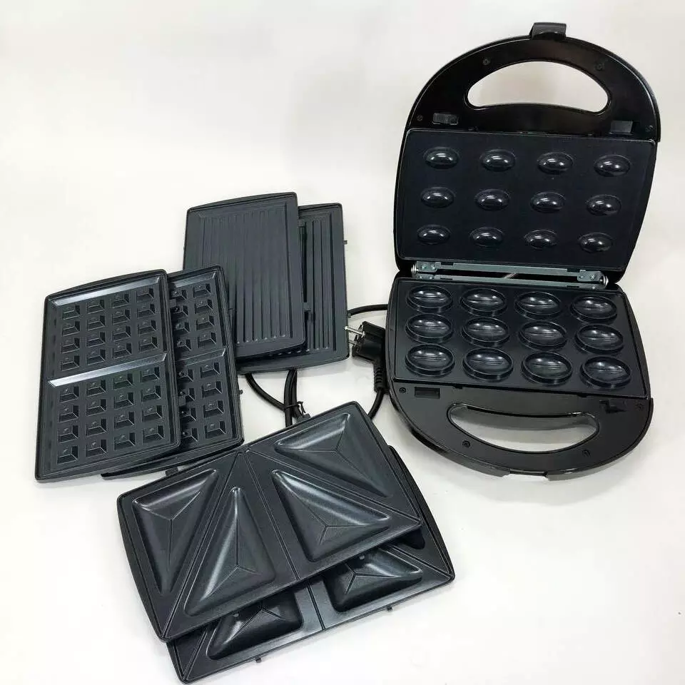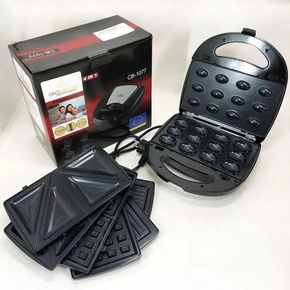 Мультимейкер 4 В 1 Crownberg Cb-1077 750 Вт Гриль Сендвичница Вафельница Орешница