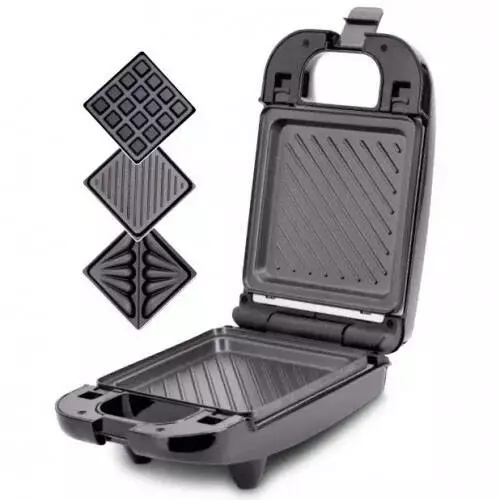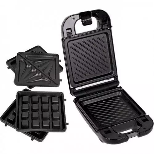 В данной бутерброднице предусмотрены 3 пары сменных панелей: треугольники ( для приготовления бутербродов треугольниками), вафли (для приготовления венских вафель), гриль (для приготовления бутербродов, как на гриле, а, также, овощей-гриль).