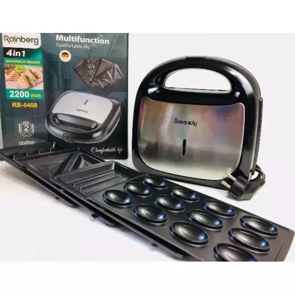 Характеристики: Мультимейкер Rainberg RB-5408 4в1 вафельница, бутербродница, орешница, гриль 2200 Вт