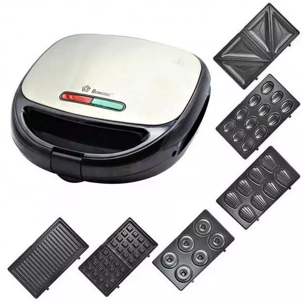 Сендвичница Domotec MS-7706 со съемными пластинами - это отличный способ сэкономить время и за считанные минуты приготовить горячие бутерброды с самыми разнообразными начинками, пышные вафли, хлебцы, кексы, печенье «орешки», пирожки и пончики.