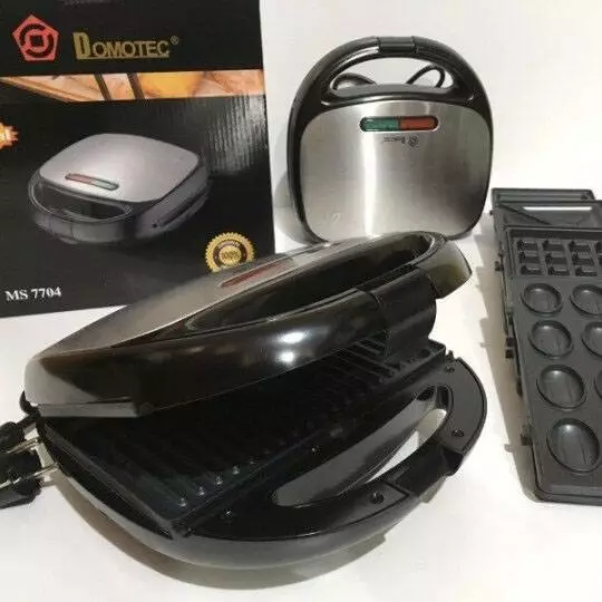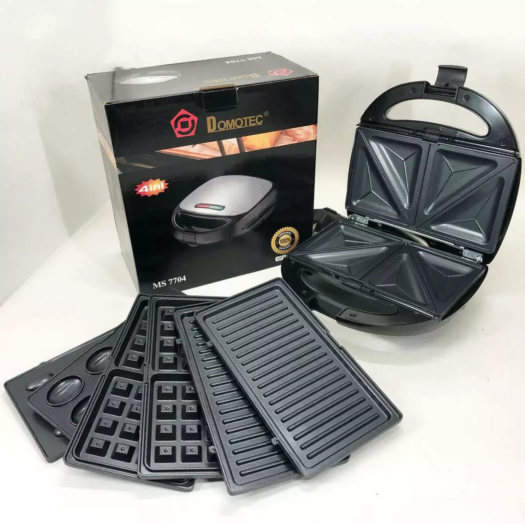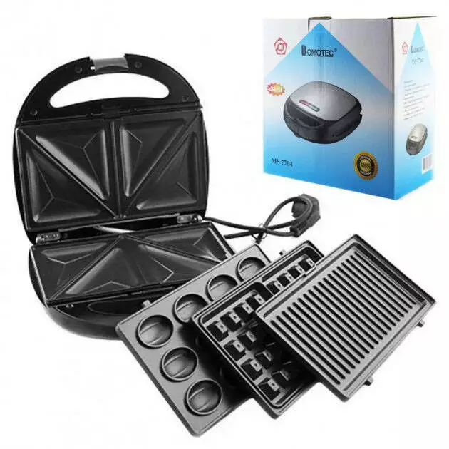 4 в 1 Гриль, бутербродница, вафельница, орешница Domotec ms 7704, 1000Вт со съемными формами:
