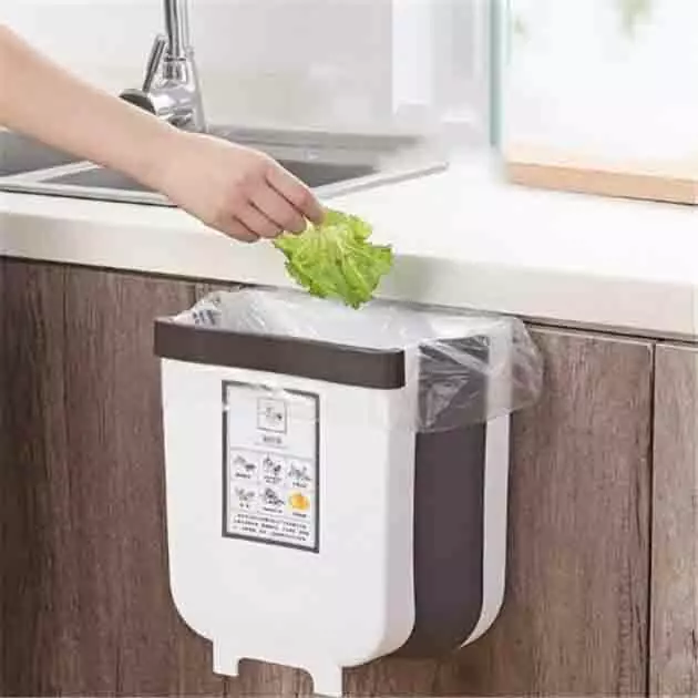 Кухонный складной мусорный контейнер не будет занимать место. Когда вы не используете его, вы можете сложить его и открыть когда он вам понадобиться. Походит для подвешивания на дверцу, ручку толщиной до 2.5см.