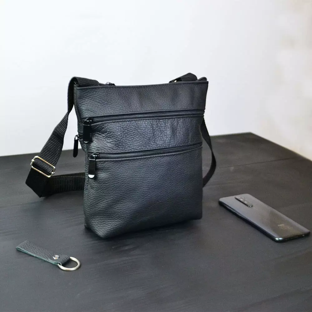 Эта кожаная сумка мессенджер – это идеальный выбор для тех, кто ценит изысканный стиль и практичность. Изготовлен из высококачественной натуральной кожи флотар черного цвета, она сочетает в себе элегантный дизайн и высокое качество материала.