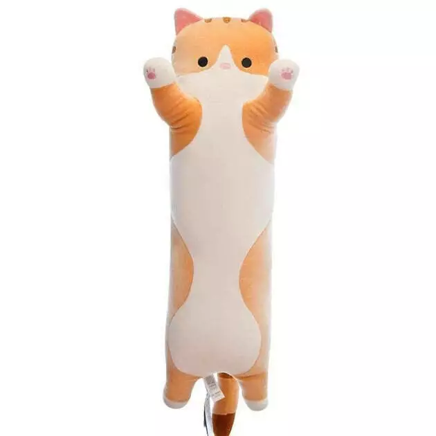 Мягкая плюшевая игрушка Длинный Кот Батон котейка-подушка 50 см. Цвет: коричневый