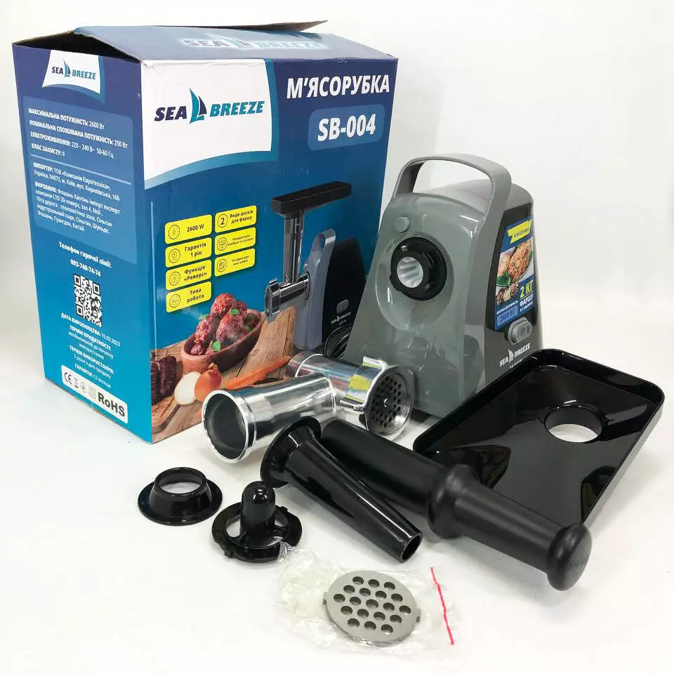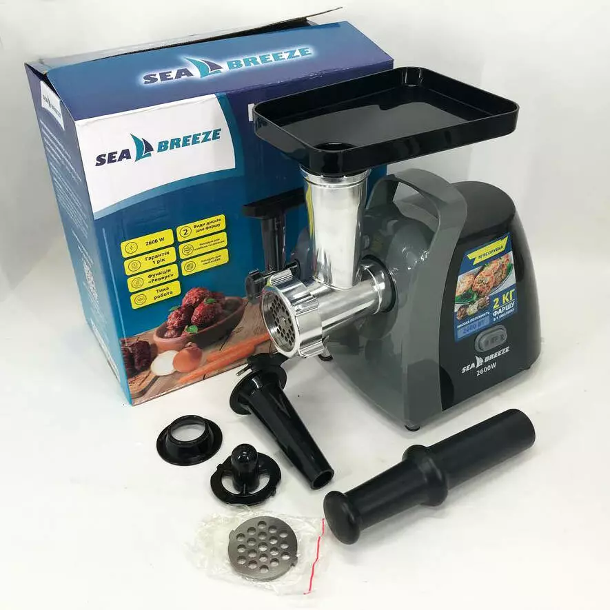 Мясорубка электрическая Sea Breeze SB-004 насадка для колбас, насадка для люля-кебаб, нож, толкатель 2600вт