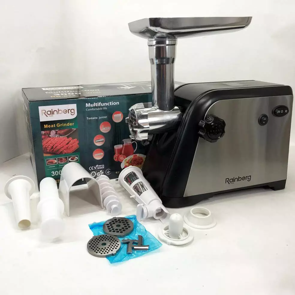Мясорубка Rainberg RB-672 3000 Вт - это ваш надёжный напарник и помощник на кухне. Качественная и доступная по своей стоимости модель электрической мясорубки от китайской фирмы Rainberg предназначена для приготовления домашнего фарша из мяса различных видов, овощей, рыбы, а также грибов,