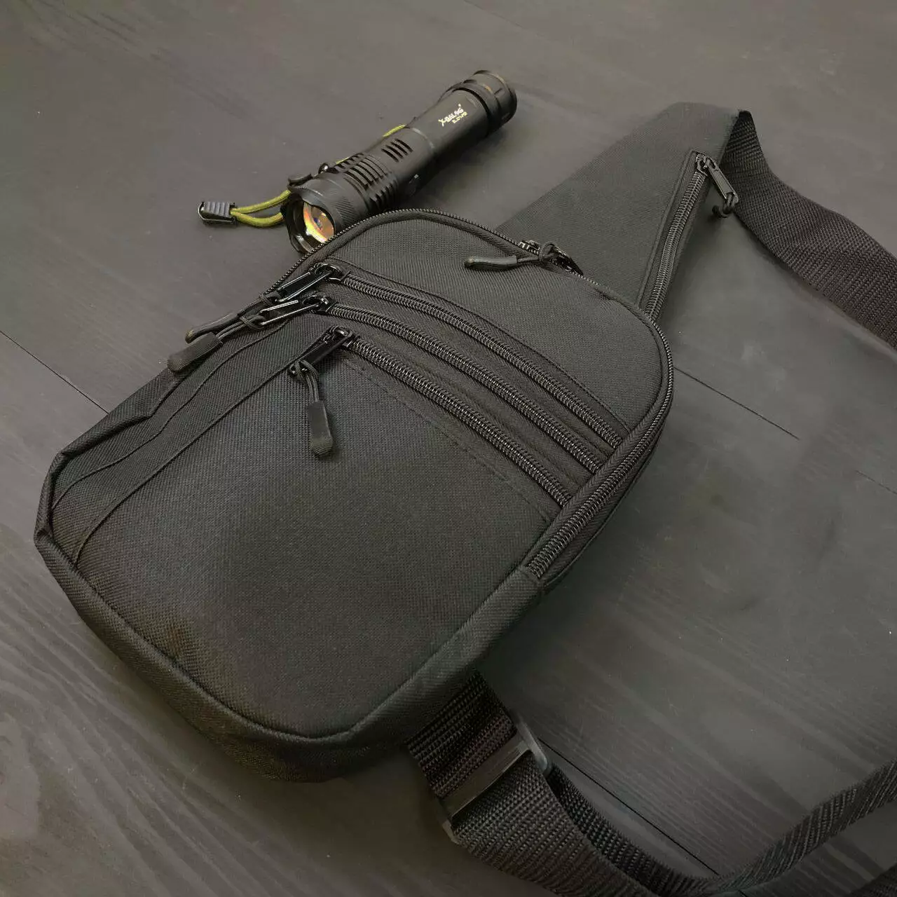 Качественная тактическая сумка с кобурой под оружие на 6 карманов, черная.