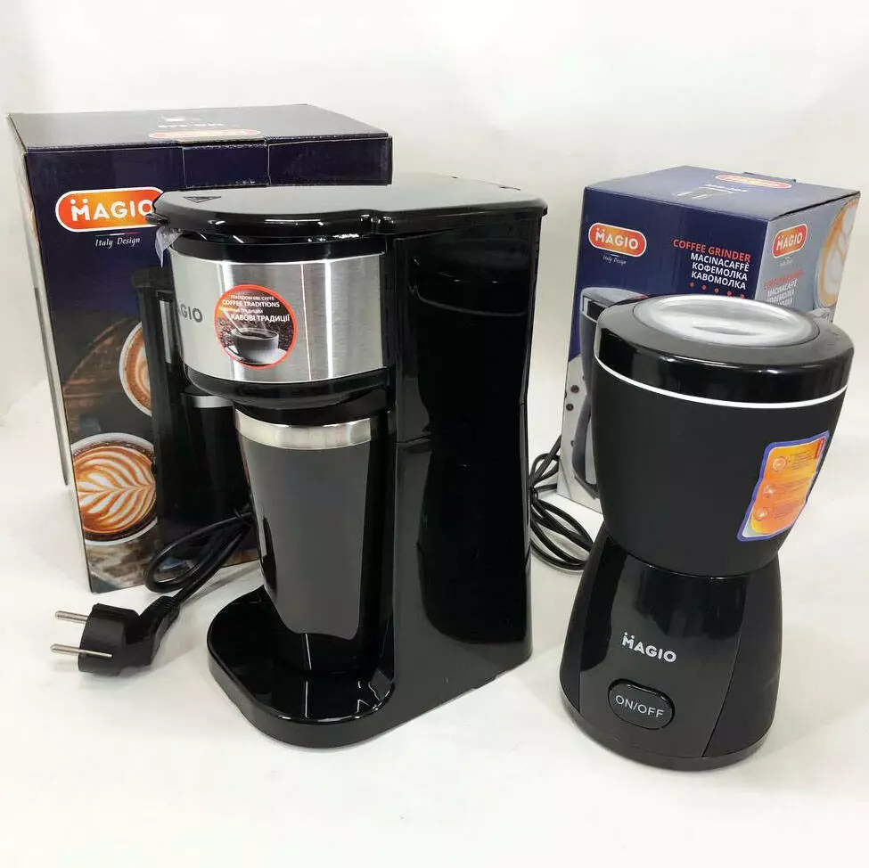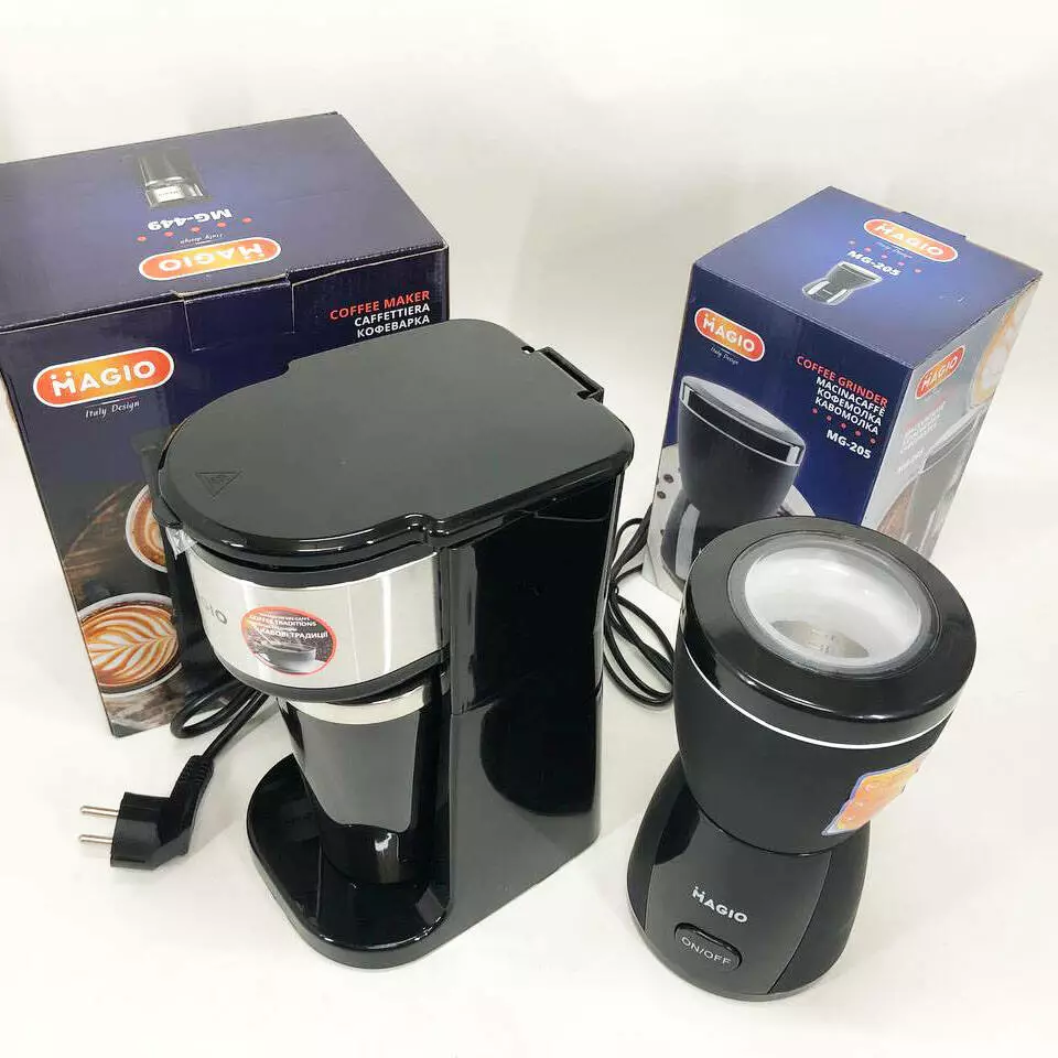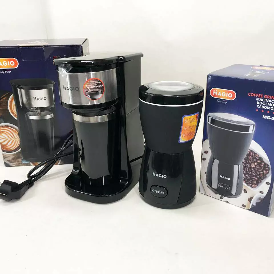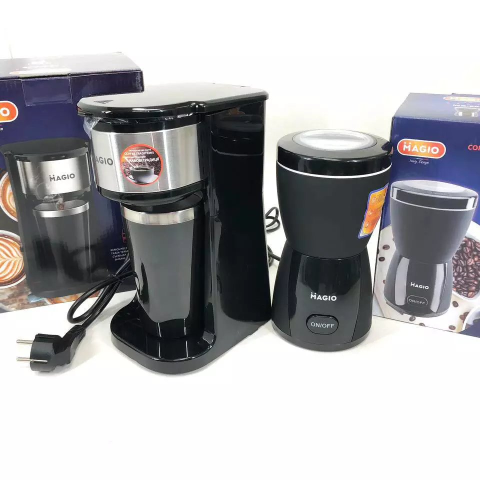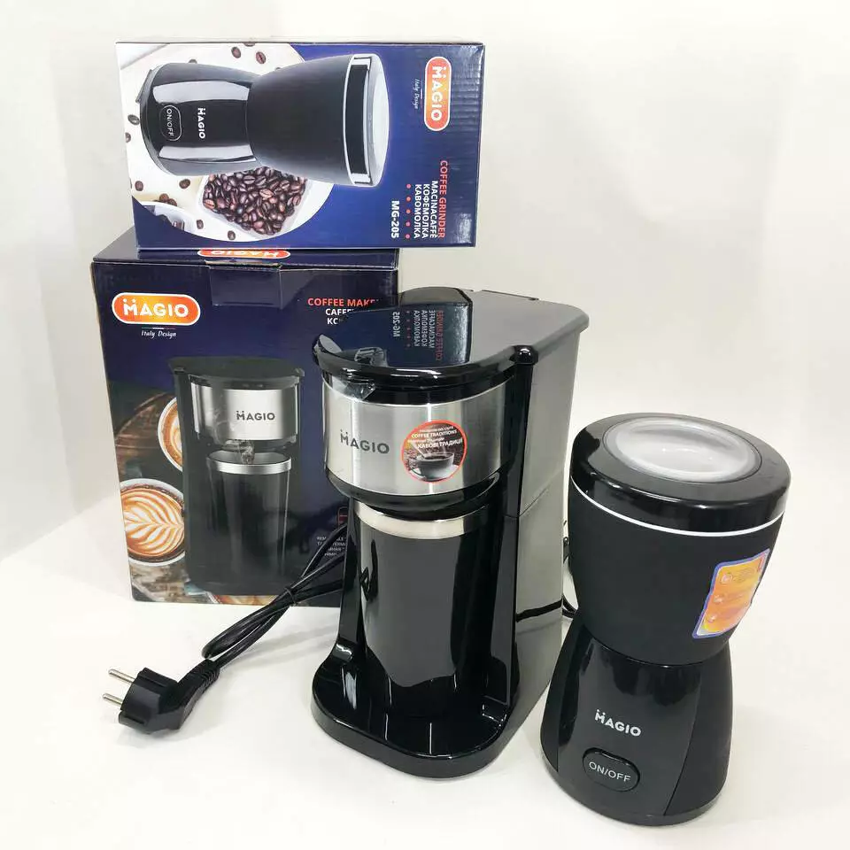Набор дизайнерской линейки Magio: Кофемолка MAGIO MG-205 + Капельная кофеварка Magio MG-449