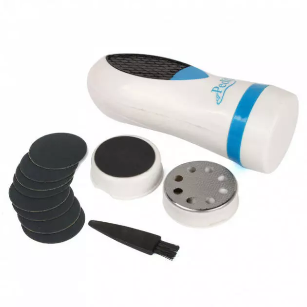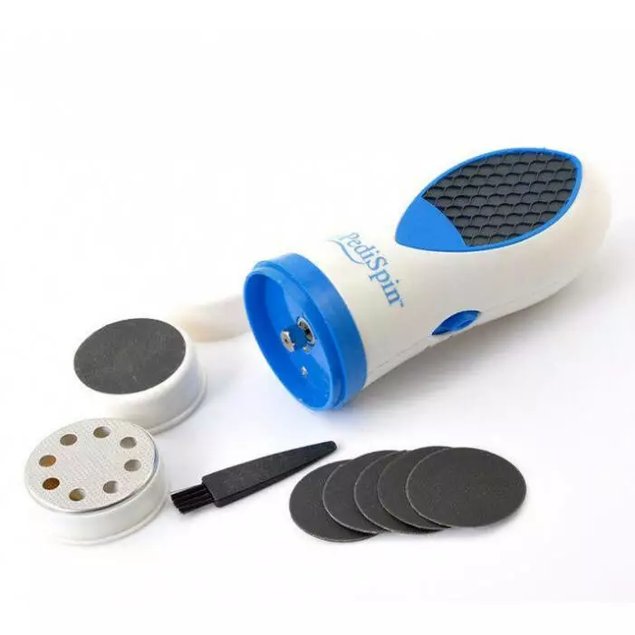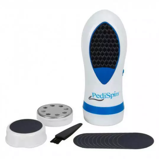 Набор для педикюра Pedi Spin – аппарат нового поколения, осуществляющий уход за ступнями, помогающий избавиться от мозолей на ногах в самые короткие сроки. Электрическая пемза для педикюра Pedi Spin разработана специально для ухода за кожей стоп. Прибор Pedi Spin — это компактное устройство, которое позволит вам качественно ухаживать за ножками. С помощью такого устройства вы легко устраните неприятные натоптыши и огрубевший слой кожи. Прибор невероятно прост в пользовании, но результат процедуры можно сравнить с профессиональным педикюром в косметическом салоне.