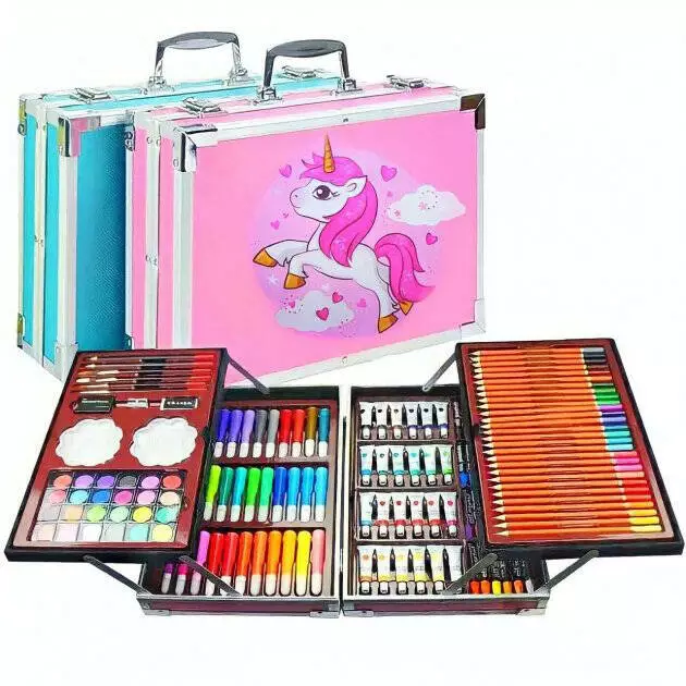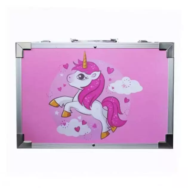 Набор для творчества в алюминиевом чемодане Единорог 145 предметов, чемодан для рисования детский кейс. Цвет: розовый