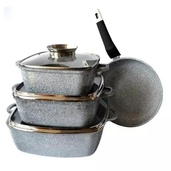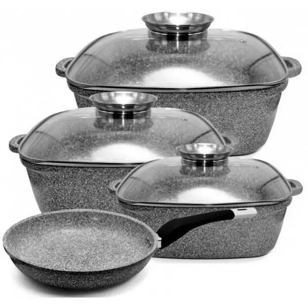 Набор казанов UNIQUE UN-5531 7 предметов, квадрат: 16 см, 20 см, 24 см, круглые 24 см сковорода