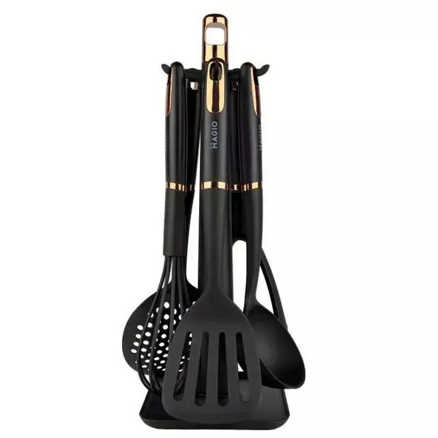 Набор кухонный MG-1126 — практичные принадлежности из пластика и нейлона. Идеально подходит для всех ваших повседневных кулинарных потребностей. Благодаря подставке можно легко хранить их на кухонной столешнице.